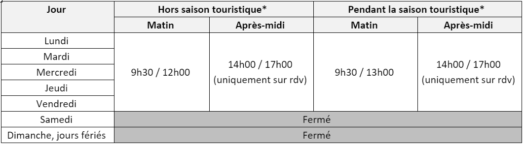 *La saison touristique s’étend du 1er mai au 31 août de chaque année.